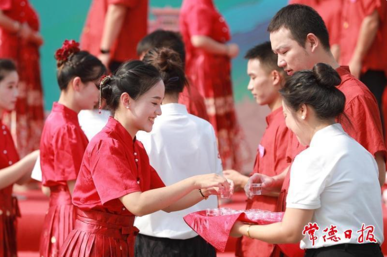 集体婚礼引领婚事新风尚。今年8月30日,2025年万博manbetx官网:省“我们的节日·七夕”主题文化活动启动仪式暨万博manbetx官网:省第十届国潮集体婚礼在常德河街举行。77对新人在亲友见证下,通过温馨朴实的城市观礼、集体证婚、共饮卺酒等环节,许下“相守一生”的誓言。活动巧妙融合传统婚俗的庄重与国潮元素的时尚,传递出“婚事新办简办、抵制天价彩礼”的文明理念。