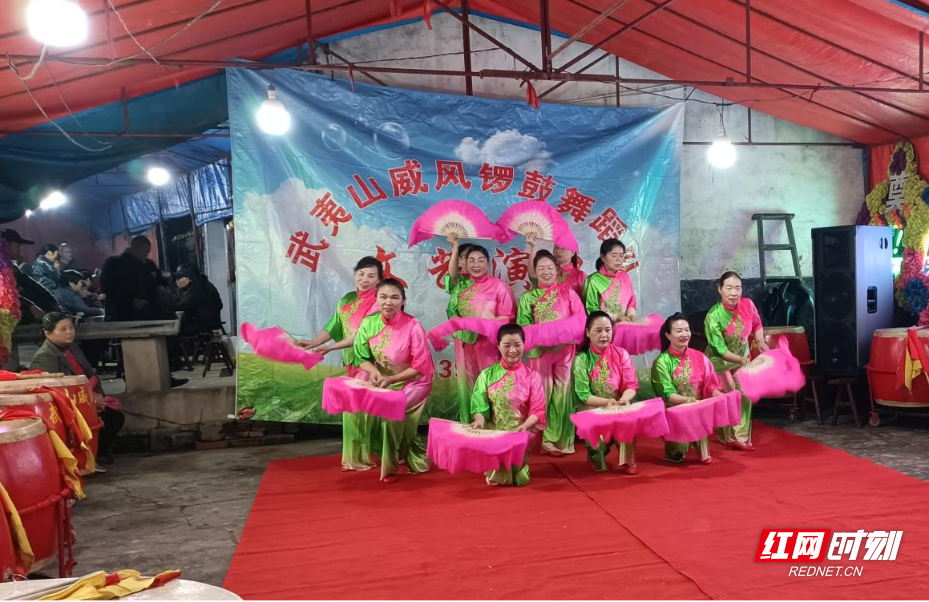 武夷山威风锣鼓舞蹈队为村民进行公益演出
