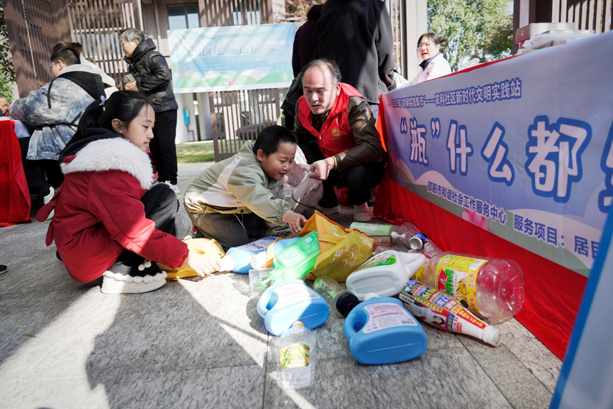 环保行动也变得触手可及。在“‘瓶’什么都给我”摊位,居民们用积攒的废旧塑料瓶兑换小礼品,践行绿色生活理念,有趣又实在。