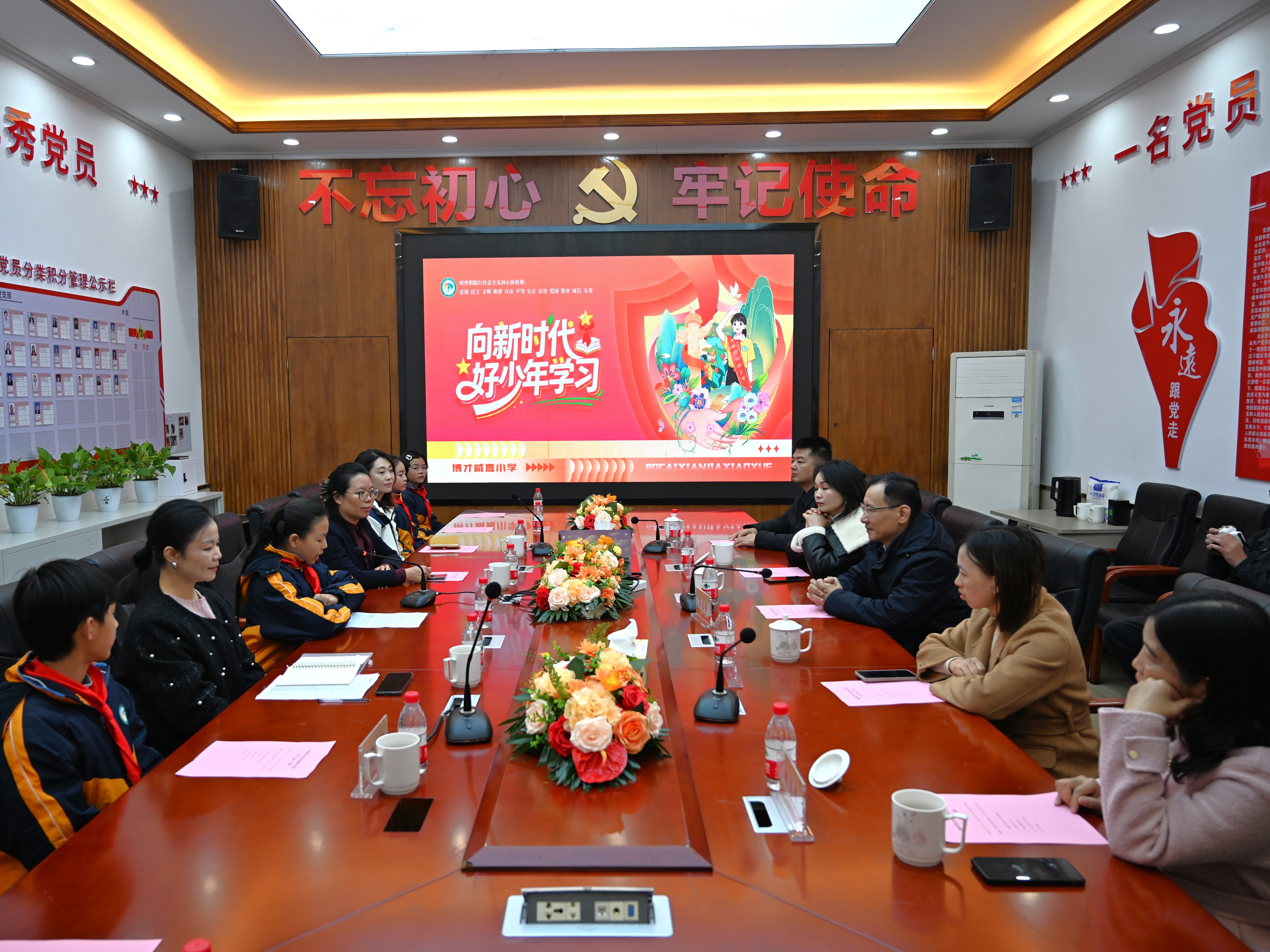 授证仪式后的座谈会进一步拓展了榜样力量的深度与广度。对话氛围平实而深入,围绕“新时代好少年如何成长、如何影响更多学生”展开交流。