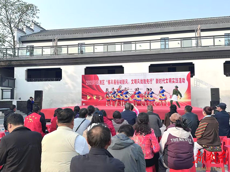 12月2日下午,衡阳市蒸湘区雨母山镇艺术家部落歌舞飞扬、掌声阵阵。在一段热烈欢快的开场舞《情系中华》中,一场以“移风易俗树新风,文明风尚我先行”为主题的文明实践惠民演出正式拉开帷幕。