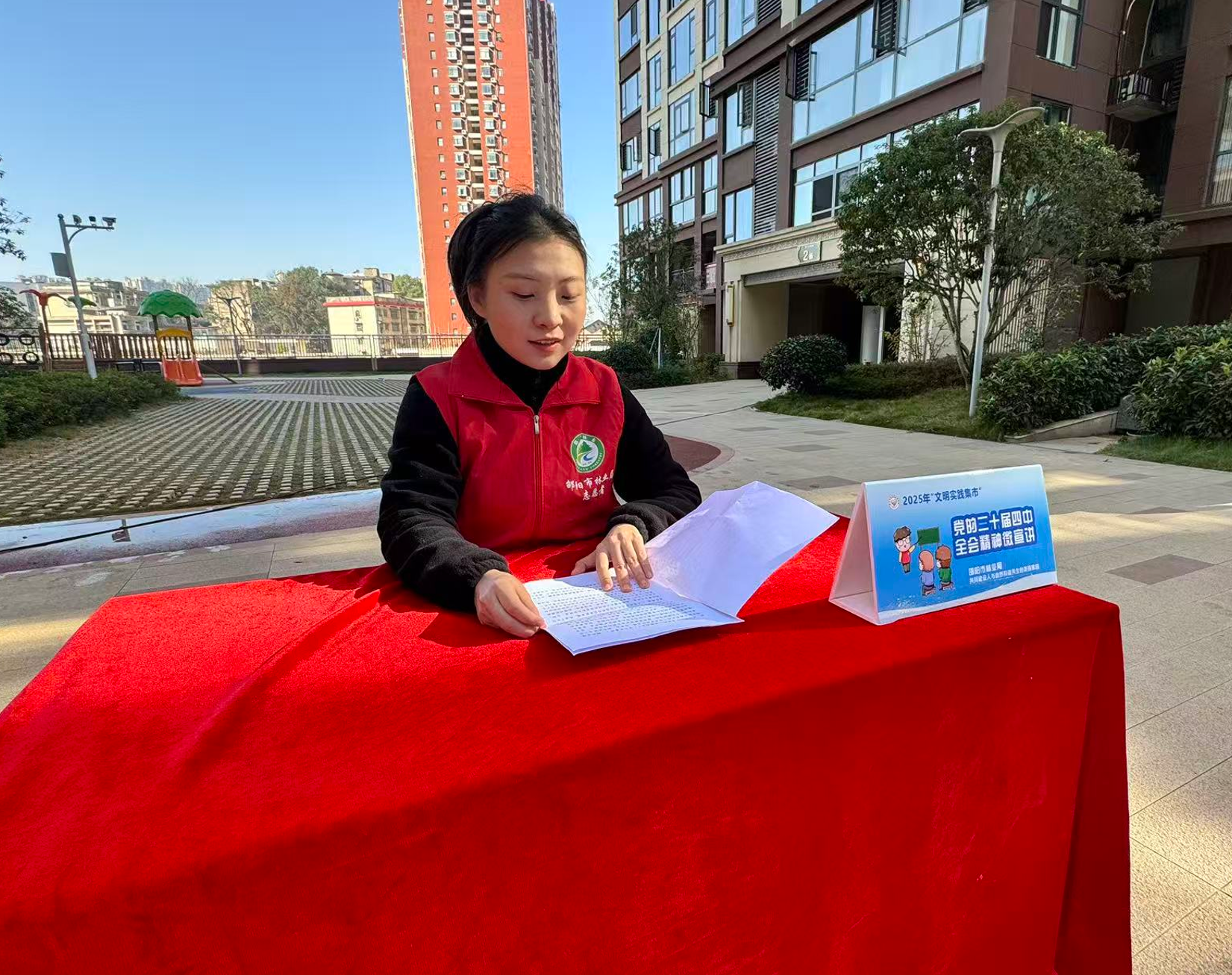 一旁的微宣讲也格外接地气,宣讲员结合社区变化和身边事例,生动解读党的二十届四中全会精神,把“大道理”变成“身边事”,让居民愿意听、听得进、有共鸣。