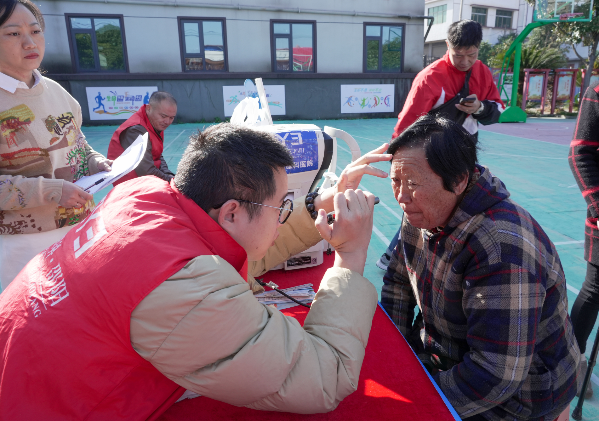 隔壁义诊区早已排起长队,口腔检查、视力筛查等服务一应俱全。“您眼压有点高,平时少看手机。”医护志愿者边检查边叮嘱,把关爱落到实处。