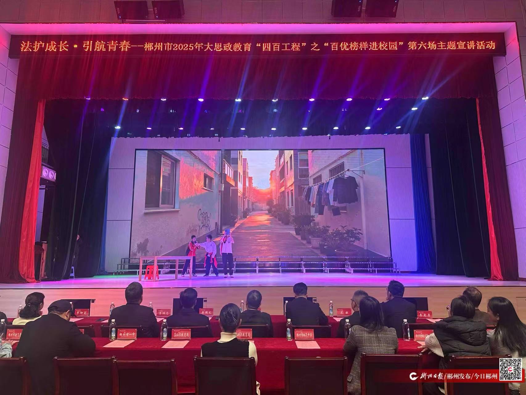 12月8日,郴州市2025年大思政教育“四百工程”之“百优榜样进校园”第六场主题宣讲活动在郴州市第六中学举行。